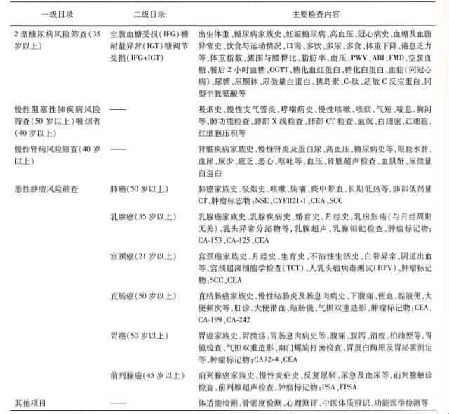 (1)以健康評(píng)價(jià)和健康風(fēng)險(xiǎn)篩查為目的,重點(diǎn)掌握受檢者健康狀況、早期發(fā)現(xiàn)疾病線索;