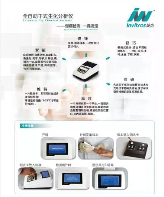 南京大樹英杰——全自動干式生化分析儀,100秒同步檢測總膽固醇、高密度脂蛋白膽固醇、甘油三酯、葡萄糖、低密度脂蛋白膽固醇、極低密度脂蛋白膽固醇,尿酸,血紅蛋白和谷丙轉(zhuǎn)氨酶。手提箱里的體檢中心,移動醫(yī)療好幫手。!